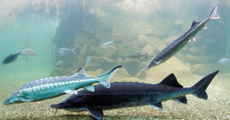 Direkter Vergleich von anadromen Störarten, die in der Oberen Donau heimisch waren: