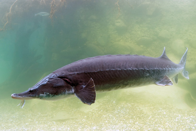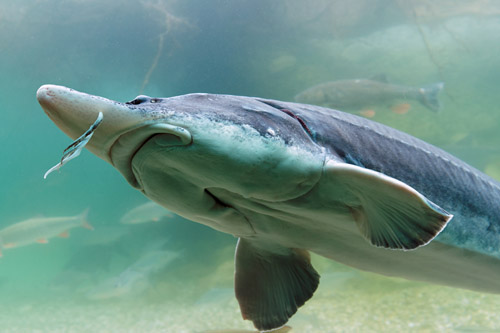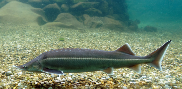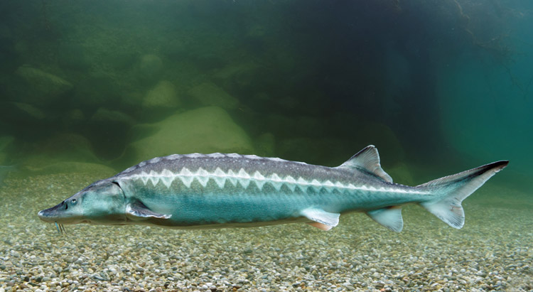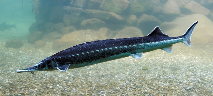 Der Sterlet zeichnet sich durch eine große Zahl von feinen Seitenschildern aus.